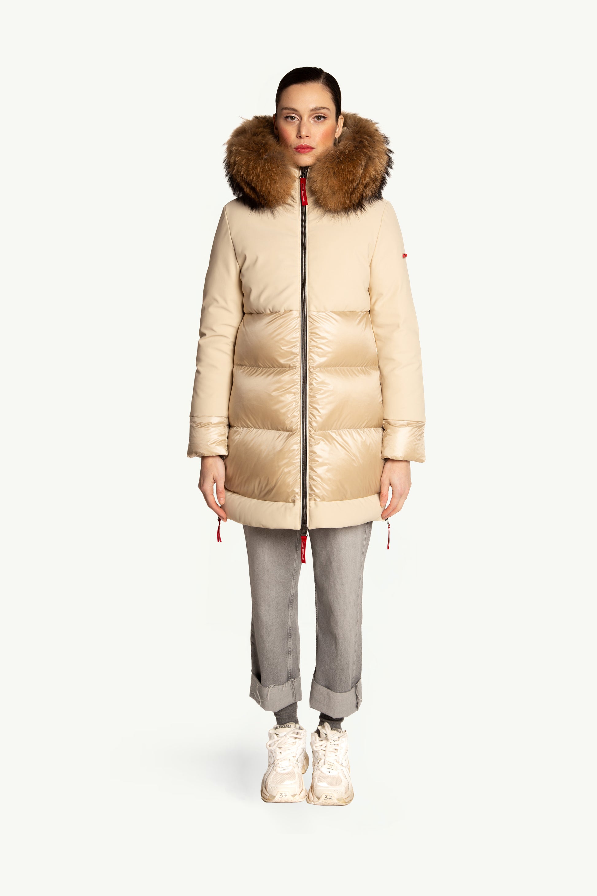 LOREA es un plumas que fusiona sofisticación y funcionalidad, combinando un tejido mate con detalles brillantes en el mismo tono para un acabado armonioso y moderno. Incluye una capucha con pelo natural que proporciona calidez y un toque de elegancia natural, perfecta para los días fríos sin renunciar al estilo.
