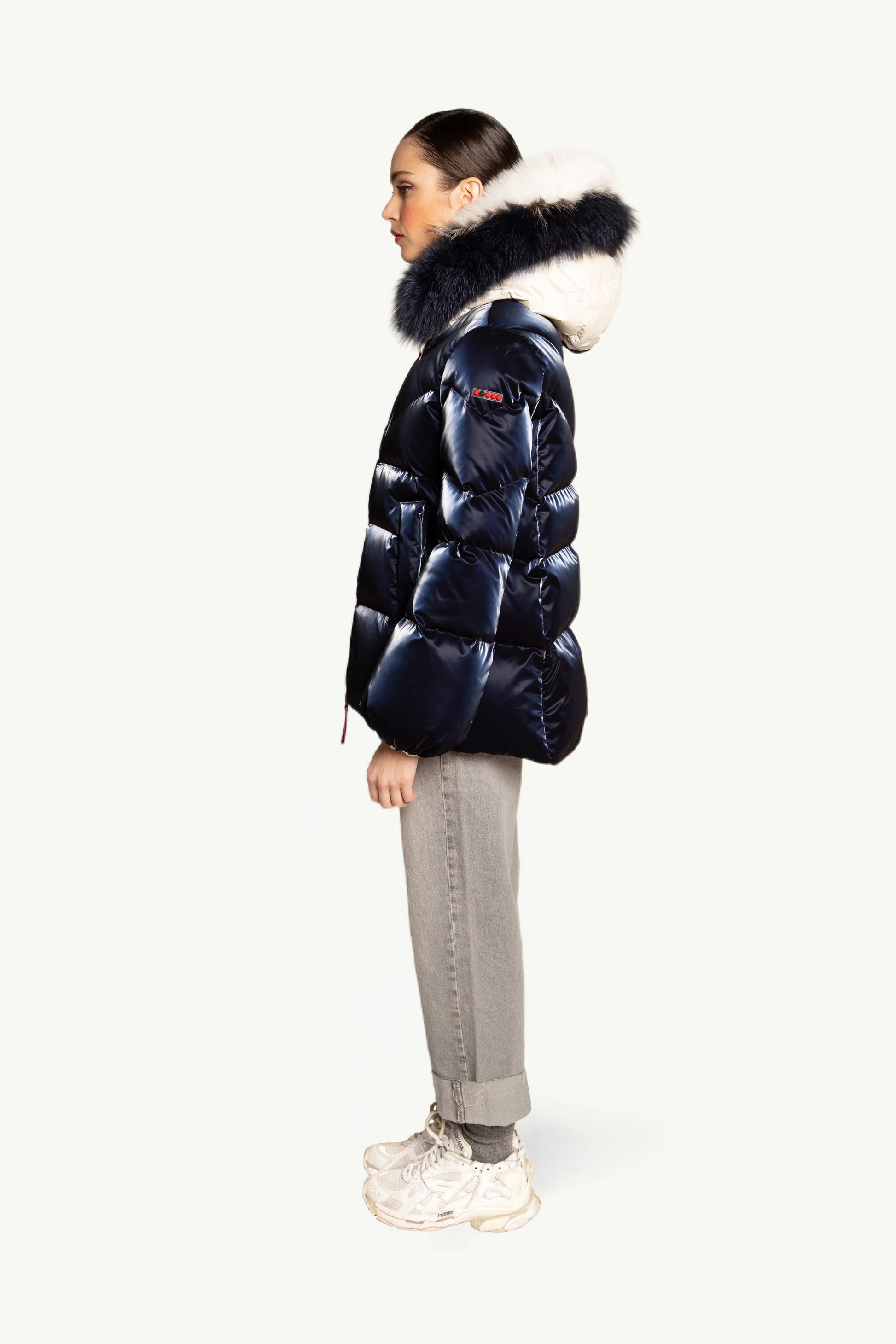 Cazadora de plumas RANDY combina funcionalidad y estilo con su capucha en blanco que aporta un contraste elegante. El pelo de la capucha, que mezcla el tono principal de la cazadora con blanco, ofrece un acabado sofisticado y cálido. Ideal para protegerse del frío sin renunciar a un diseño moderno y cuidado.